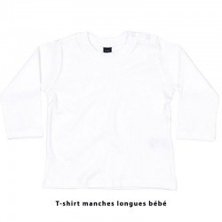 T-shirt bébé personnalisé manches longues disponible de 3/6 mois à 18/24 mois (2 ans) : extensible & confortable avec bouton-pression à l'épaule pour un habillage facile de bébé. (100 % coton - tissu oeko-tex)